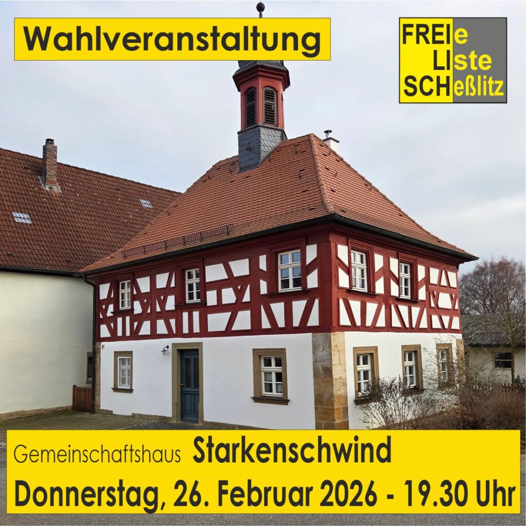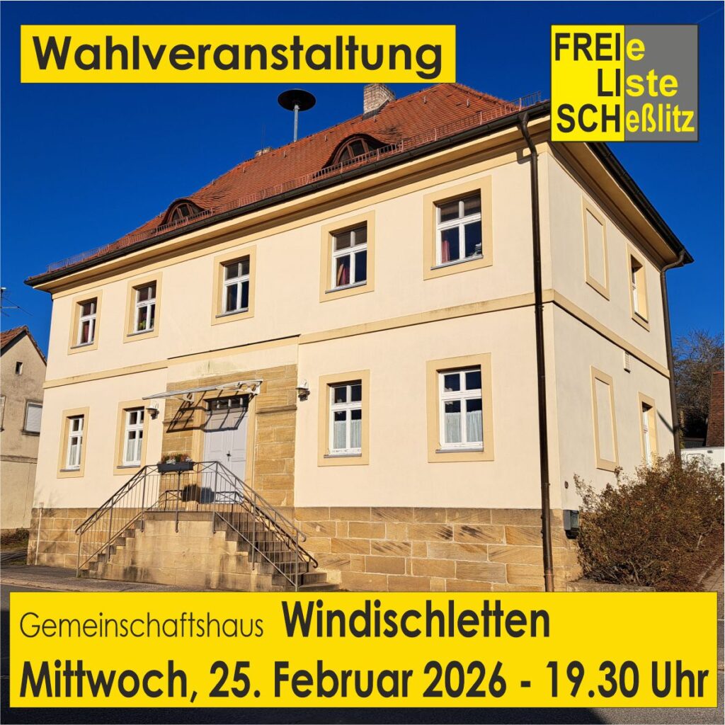 Die FREIe LIste SCHeßlitz möchte mit allen Interessierten Bürgerinnen und Bürgern über die Zukunft in der Kommunalpolitik sprechen und diskutieren.